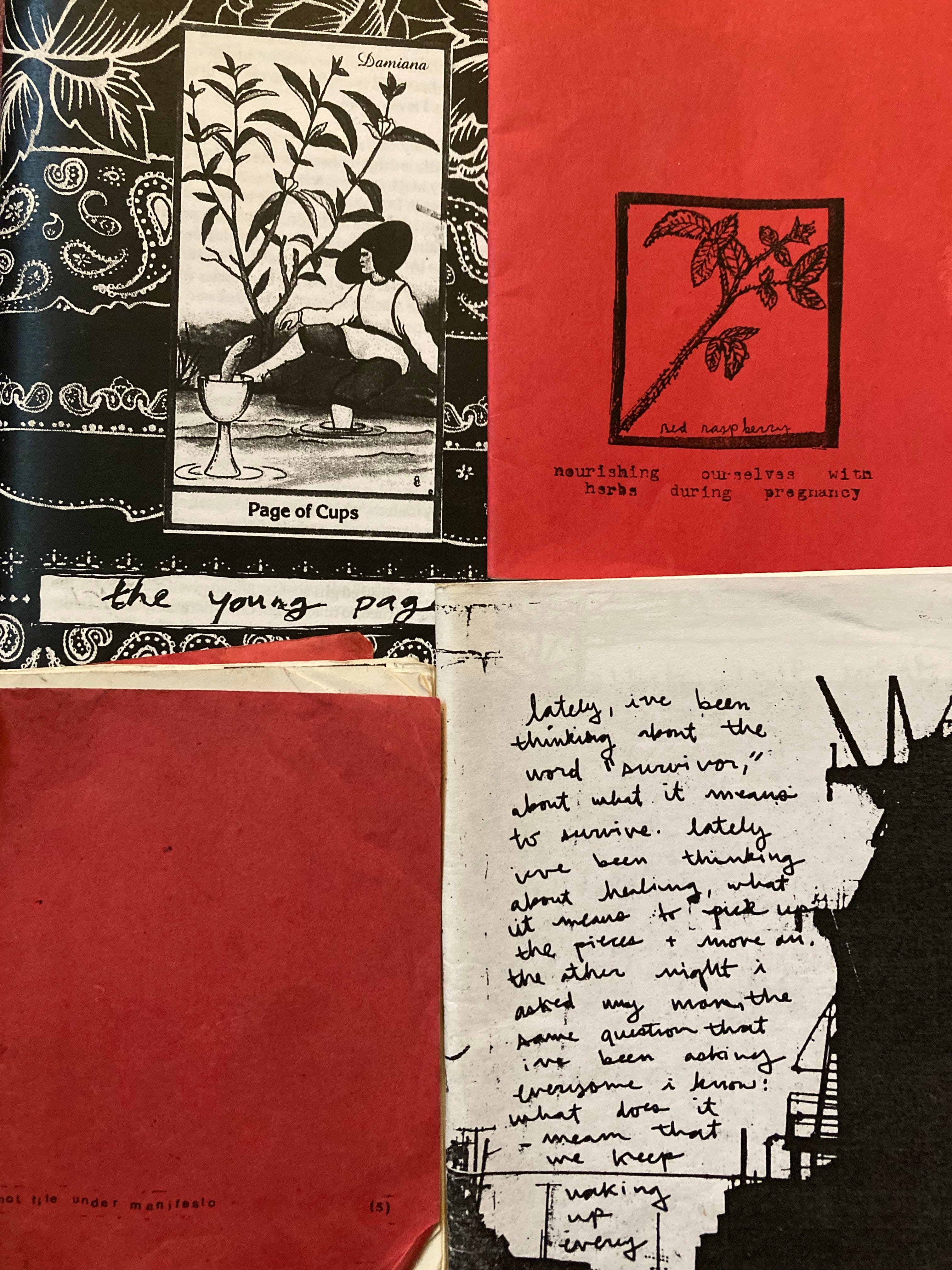 I have been making zines for 26 years. Holy shit, that’s a long time. But I started making zines when I was 14 & I am 41 now. I distribute zines, helped organize a zine fest, co-founded a zine library, & have taught classes about zines. My old zines are archived at libraries at Harvard & Smith, in DIY punk spaces, at the midwifery school I went to, & in an RV that used to tour the country with zines- I don’t know if it still does.