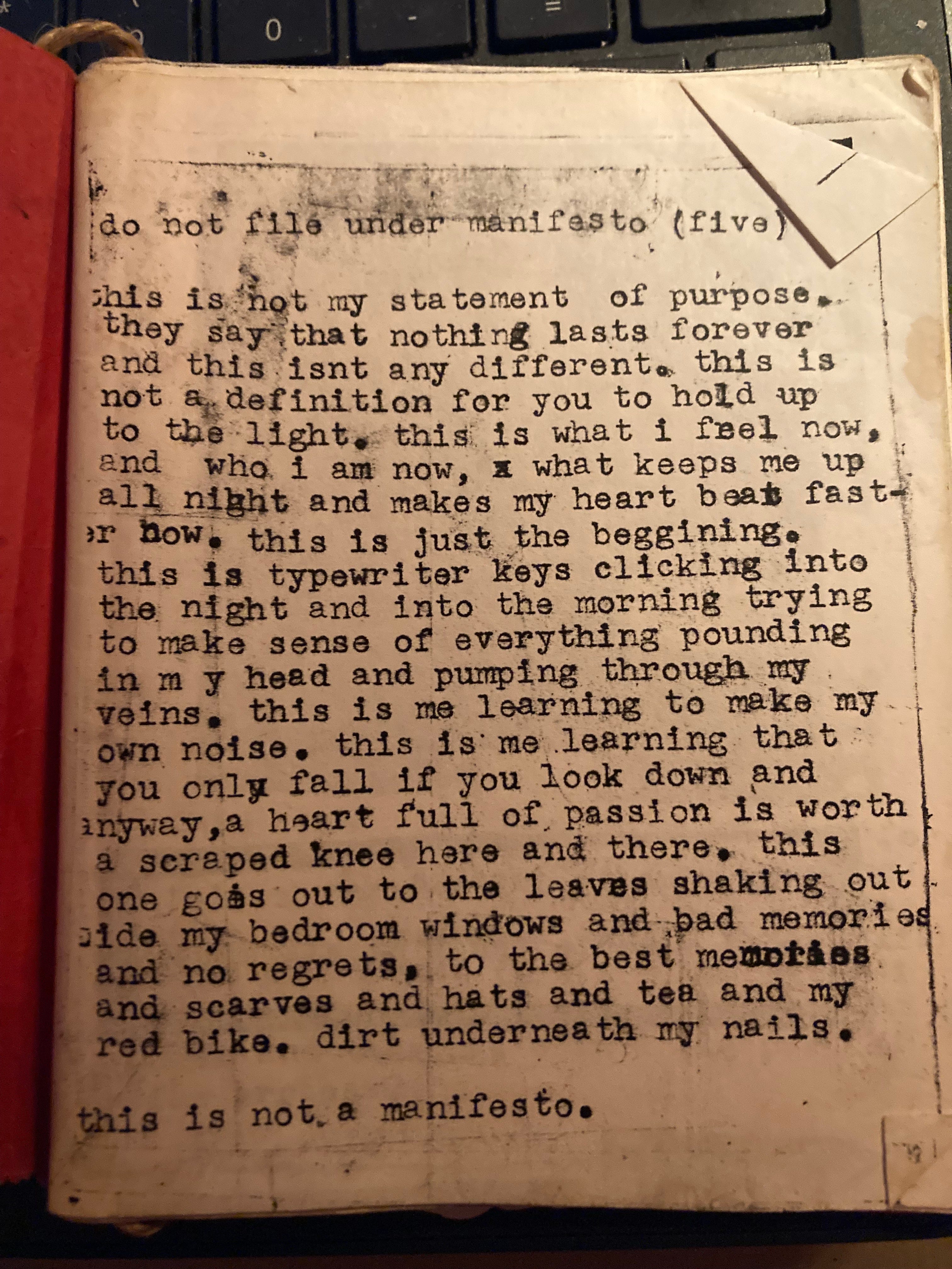 At Idle Kids Books & Records, we spray painted a mural that said “my friends & I are going to change the world” & we have. We are parents & line cooks & carpenters. A disproportionate number of us are therapists! We are herbalists & midwives & we collect disability benefits. Many of us are still writing. Some of us have passed on but live forever in stories & speedball ink & typewritten words. We are workers among workers & outcasts among outcasts. We work in animal rescue or for shitty corporations. We are high school teachers who feel awkward when they run into their students at shows. We are DJs & poets & strippers, or all of the above. We are pharmacists fighting with insurance companies. We are bartenders who insure the femme drinking alone gets home safety. We are lawyers & we are addicts on the front lines of fucking harm reduction. We are all teachers in some way. We are laying in bed, in too much pain & too dizzy to walk across the room but we have to keep writing, we have to keep writing.
